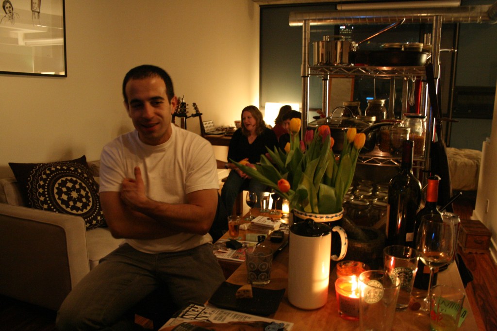 It’s a photo at the tasting party for Jen’s Pesto – a product that Jen and I put together in 2008, and which sold amazingly. In the foreground of the photo is a very happy Enzo Licata, who started Nossa Cucina with our good friend Michael Correia … and in the background is Jen Hills, herself. The shot was taken in the loft that brought together and forged life-long friendships with many people.