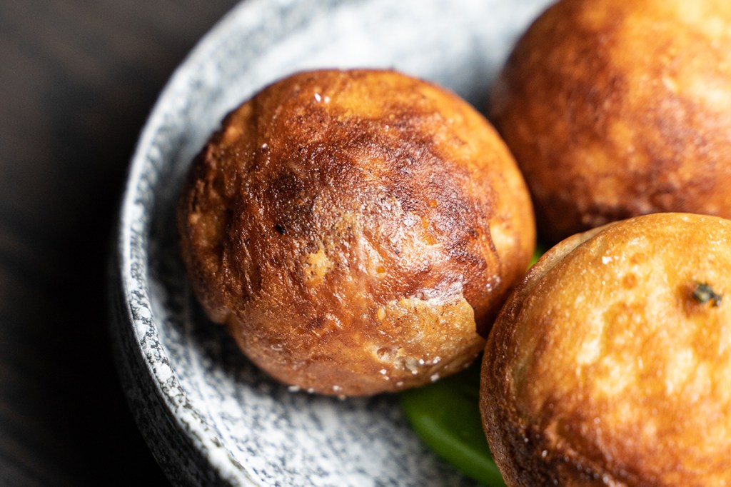 - Aebleskiver (crispy Danish pastry stuffed with sautéed herbs)