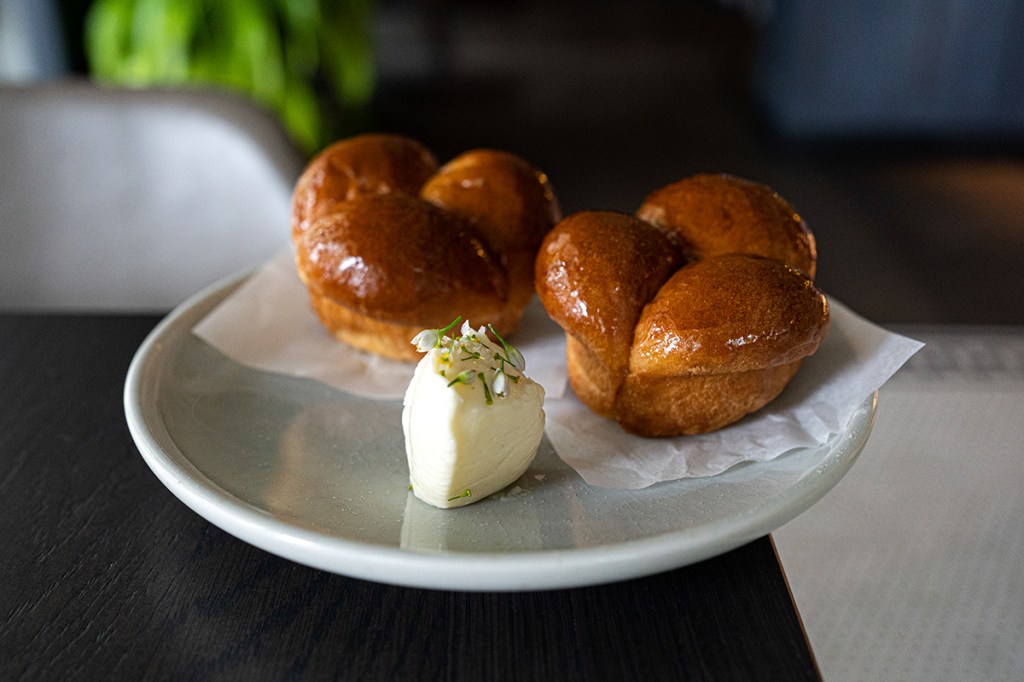 I’ve never had anything like the Aebelskiver before. It’s described as a Danish donut on the menu, but it was more like a puff pastry with delicious sautéed herbs inside, sitting on top of a green herb emulsion (basically, a thick, herby dressing).