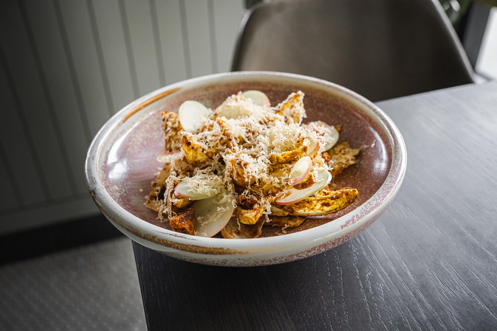 The Chicoria was like I’ve never had it before; it looked like a nest (perhaps fried) with a ryeso dressing, which is a type of miso made from rye, and topped with a Gouda from Noord (in the Netherlands), which looks a lot like Beemster (my favourite type of Gouda).